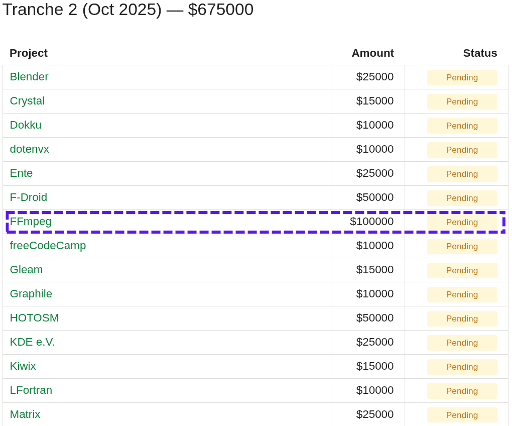 The funding is part of the initiative's second major distribution round for 2025 (Tranche 2). Though you should know that the grant is currently pending as the fund navigates through the process of reaching out to all recipients and carrying out the necessary paperwork.