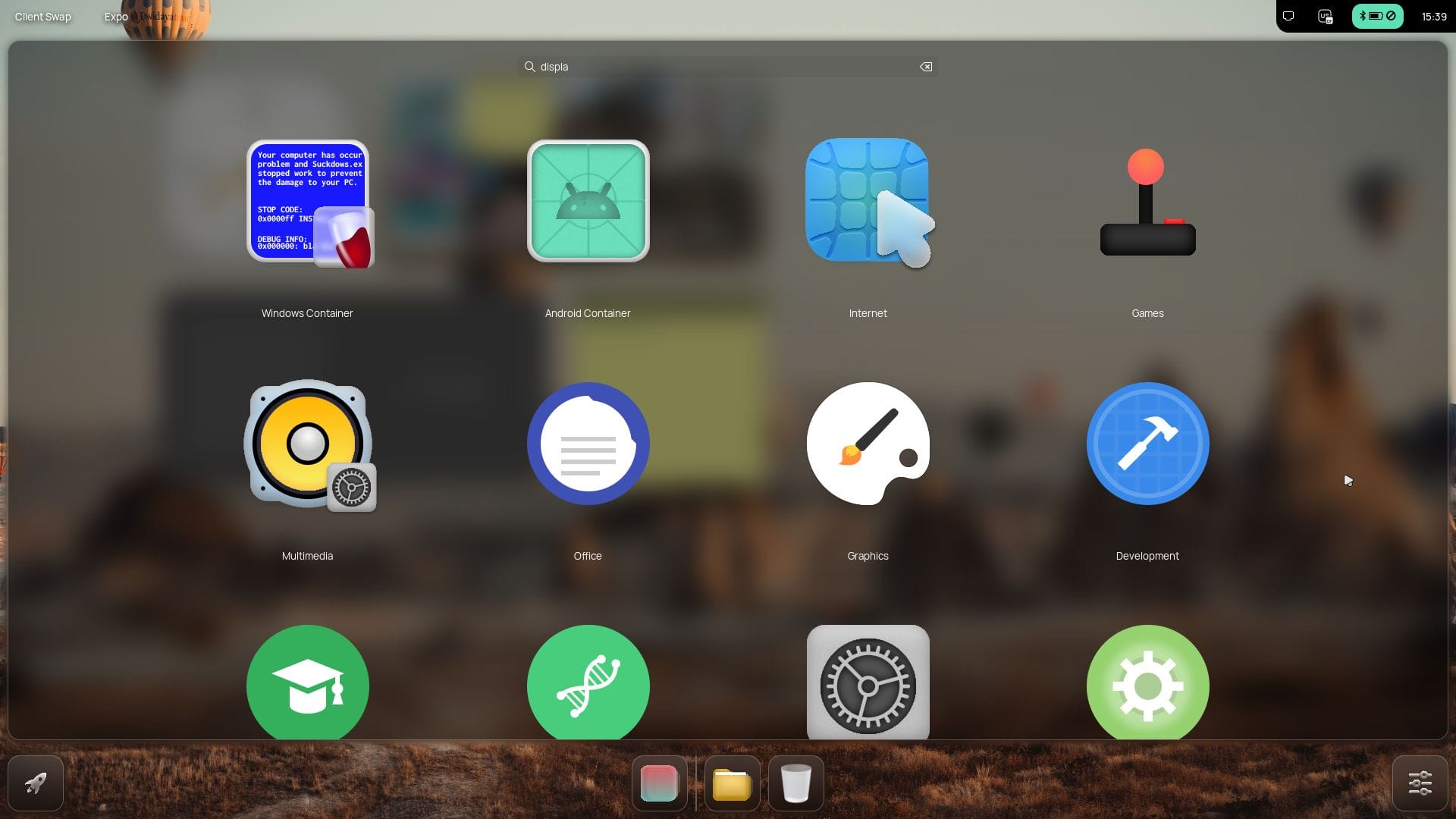 Other than that, there's a top panel with some applets, a dock for quick app launches, and an app launcher accessible via the Super key. Everything works as expected.