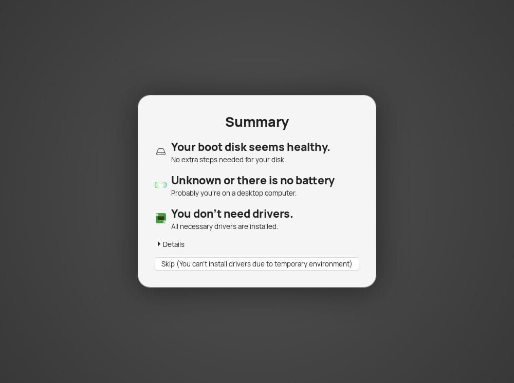 NebiOS uses the Calamares installer for system installation, which offers a clean and straightforward setup process with all the standard options like disk partitioning, user account creation, and timezone selection.