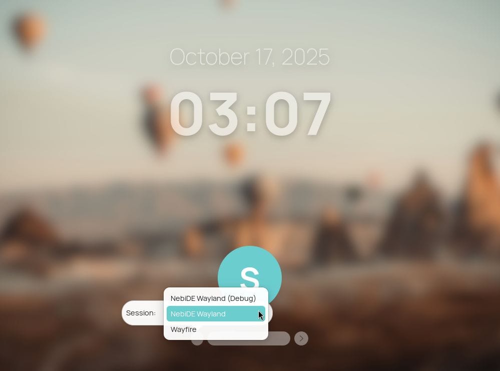 Post-installation, the lock screen greets the user with a clean interface and some interesting options. Beyond the standard login bits, you can switch the desktop session to Wayfire or access a debug mode to troubleshoot issues.
